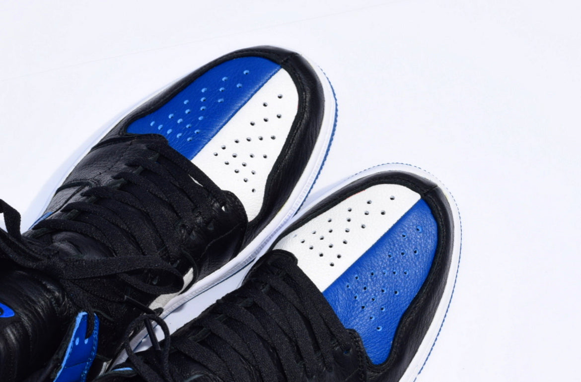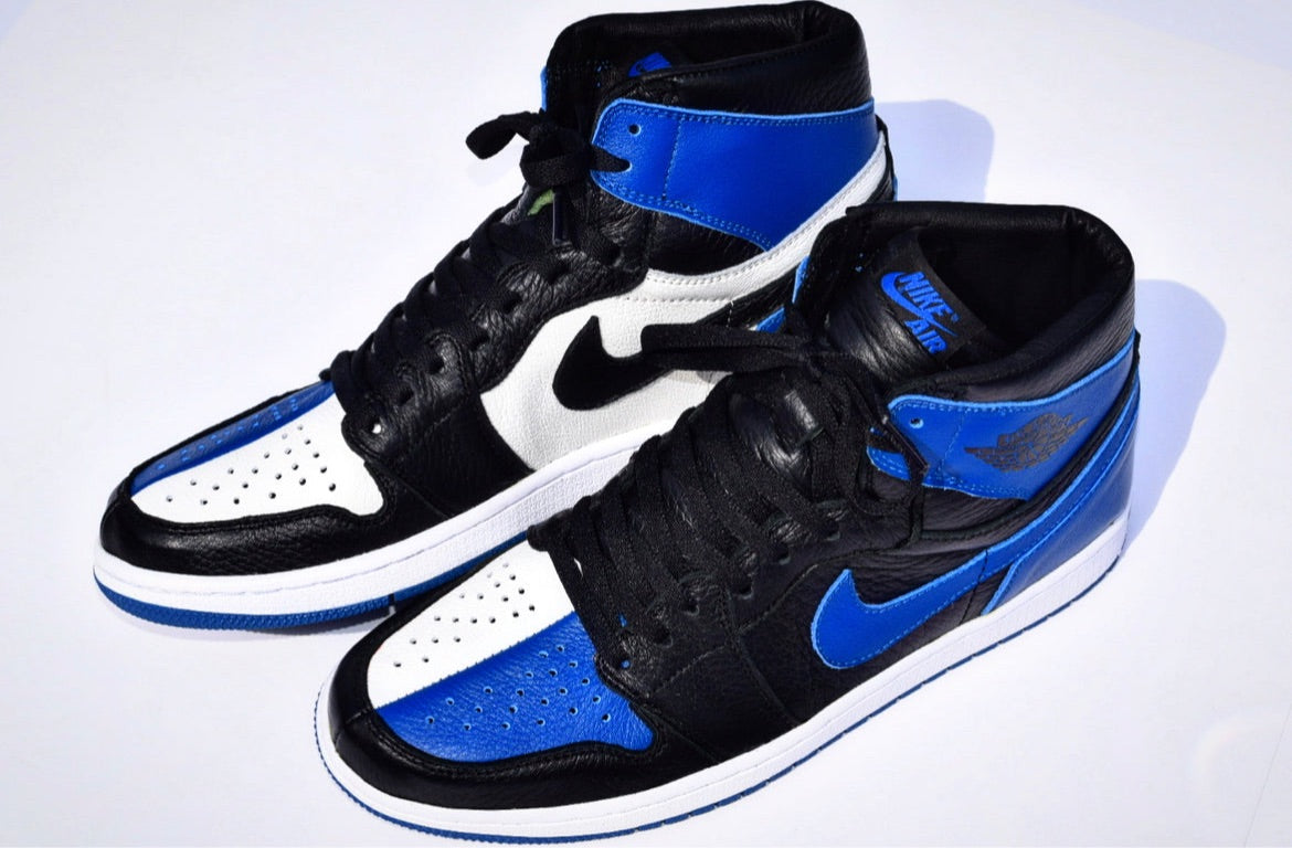 A simply yet complex design of a split shoe. Resembling a Royal AJ1 and a Fragment AJ1 this shoe is comprised of extremely plush leathers throughout. All on top of a royal blue outsole.
